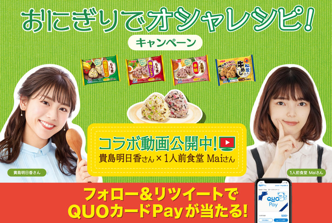 また、CMに出演している貴島明日香さんと、「1人前食堂」で知られる人気ユーチューバーの Maiさんとのコラボによる、冷凍具入りおにぎりの新しい食べ方を提案するアレンジレシピ動画を公開します。