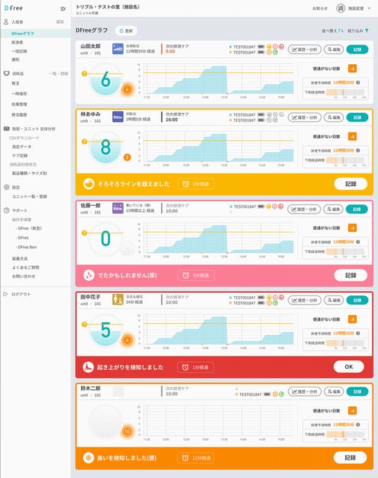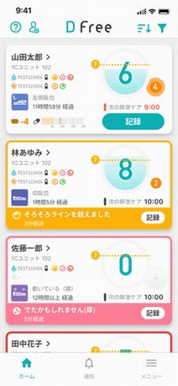 - - DFreeで測定した排尿のデータと、DFree Benで測定した排便のデータを一元管理でき、排泄ケア全般の詳細なアセスメントに役立ちます。