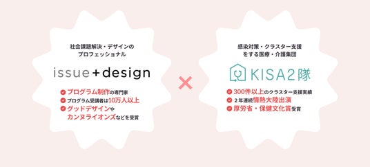 これらのプログラムは、社会課題解決・デザインの専門家であるissue+designと、感染対策・クラスター支援の専門家であるKISA2隊のコラボレーションにより企画・開発いたしました。