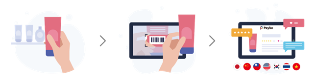 Paykeは、訪日外国人向けショッピングサポートアプリ「Payke」を展開しております。商品の「バーコード」をスマホでスキャンするだけで、商品情報を多言語で表示することが可能なサービスです。2015年のサービス開始以降、順調にシェアを拡大し、アジア圏を中心に400万人以上に利用されています。利用する日本企業は約1,200社、約45万点の商品データを多言語で保有しています。また、アプリと同機能をもつ「Paykeタブレット」端末を国内の大手ドラックチェーン、大手家電量販店、大手ディスカウントストアなどで展開しております。