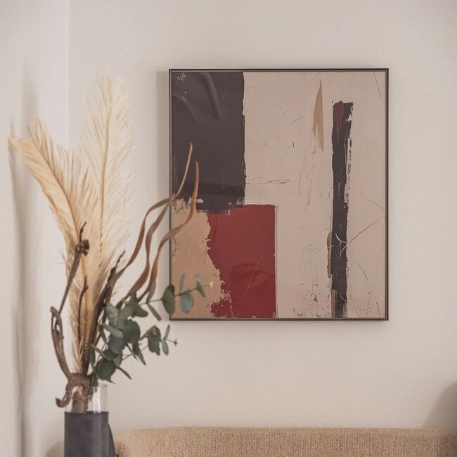 厚み1.2mmのスチールを使用したアートフレームは、ウッドでは再現できない構造美を実現しました。大胆な色彩と形状が織りなす抽象画と相性が良く、日々のライフスタイルに刺激とインスピレーションを与えます。