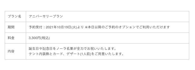 また、大切な人とのひと時を演出するアニバーサリープランもはじめました。