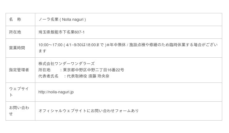 「ノーラ名栗」のオフィシャルウェブサイトはこちら