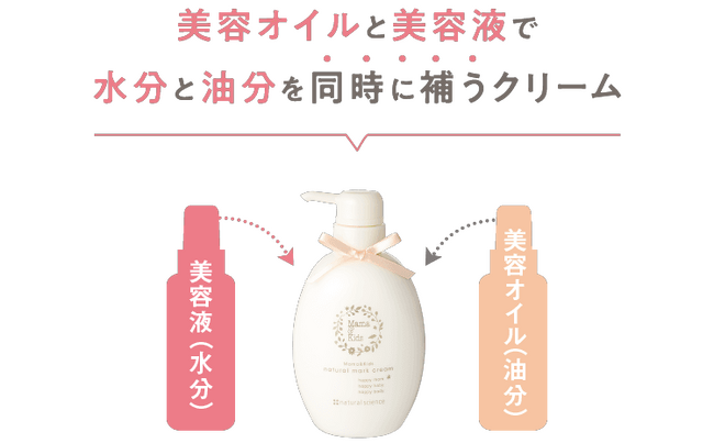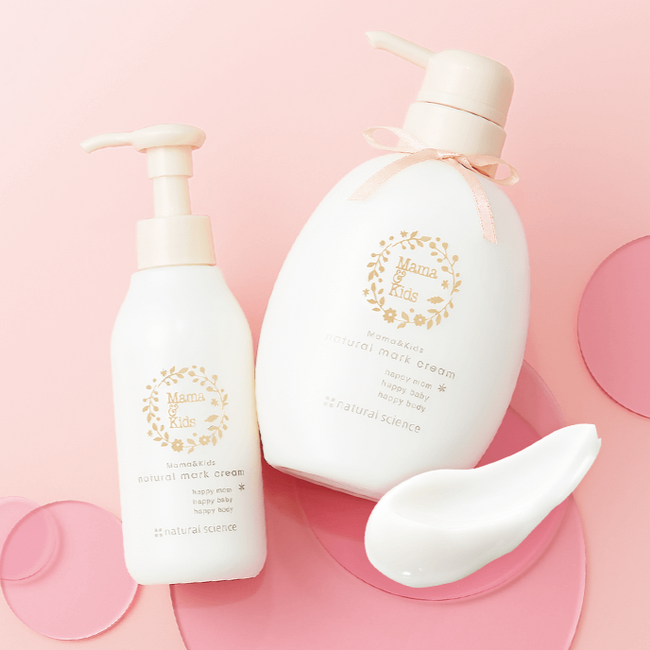 「ママ&キッズ ナチュラルマーククリーム」は、美容成分たっぷりの美容液と美容オイルからできた高保湿クリームタイプだから、水分と油分を1本で同時にチャージ。簡単お手入れで乾燥による肌トラブルを防ぎ、産後もきれいなボディをキープします。高保湿クリームなので妊娠中の乾燥しやすいボディをしっとり整え、一気に大きくなるおなかに備えて肌をやわらかくします。