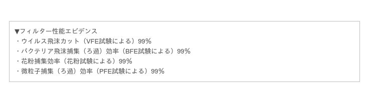 2:4層構造で花粉・ウイルス・飛沫等の捕集ろ過率99%