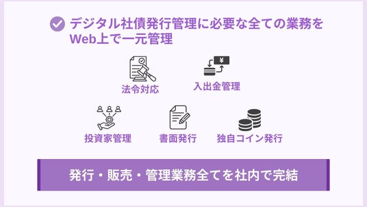 「OwnerShip」社債版は、「OwnerShip」をデジタル社債発行管理向けに機能改修したシステムであり、投資家に対してブロックチェーン技術を活用した独自コインを付与できる機能も備えております。