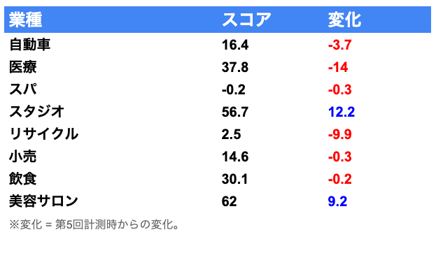 今回、第5回からの変化が大きかったのが、医療及びスタジオ業界でした。各店舗ごとに変動の理由はそれぞれに存在しているため具体的な言及は難しいですが、高評価・低評価が入る際には全体的に以下の傾向が見られました。