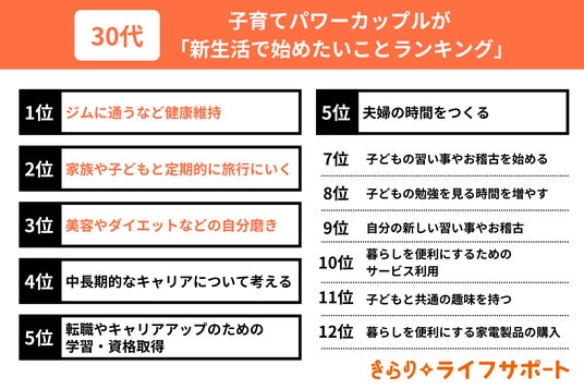 <年代別>子育てパワーカップルが「新生活で始めたいことランキング」