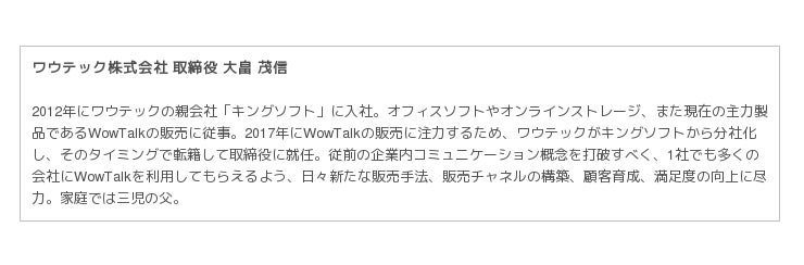 これまで、ワウテックではビジネスチャット「WowTalk」の提供を通じて業務効率化やコミュニケーションの円滑化など「働き方の課題解決」に取り組んでまいりました。また、当社でもテレワーク制度を導入することにより、ツールの提供だけではなく「より良い働き方」のご提案をできるよう、日々取り組みを進めております。