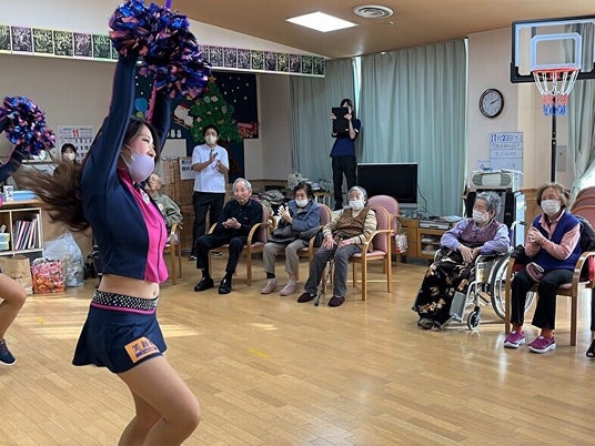 「福島ファイヤーボンズ」チアとの交流イベントでのワンシーン。チアによる華麗なダンス披露を楽しまれるお客さま