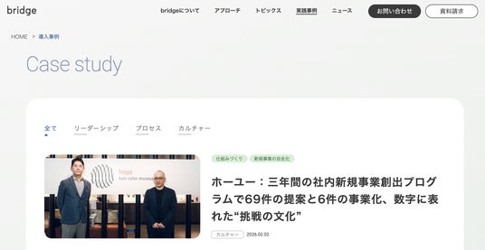 新規事業の自走化支援を行う株式会社bridge(本社:東京都港区、代表取締役:大長伸行、以下bridge)は、創業10期目を迎える節目に、企業情報・事業内容をより分かりやすくお届けすることを目的として、公式ホームページをリニューアルいたしました。