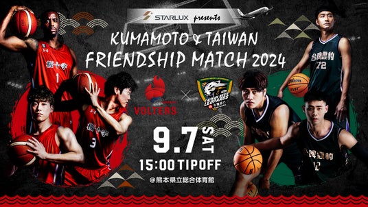 Bリーグ(ジャパン・プロフェッショナル・バスケットボールリーグ)2部に所属する熊本ヴォルターズ(熊本バスケットボール株式会社/熊本市中央区)は、国際交流試合として、台湾のプロバスケットボール1部リーグ「T1リーグ」の昨シーズン王者である「TAIWAN BEER LEOPARDS(タイワンビール レオパーズ)」とのフレンドシップマッチ 『STARLUX Airlines presents FRIENDSHIP MATCH 2024』の開催を決定しました。