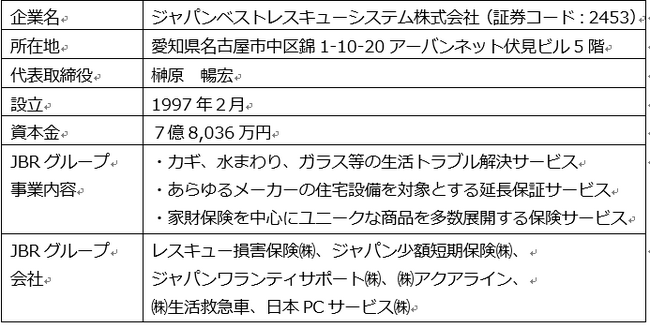 JBRは、「困っている人を助ける」という経営理念として、生活トラブル全般を解決するサービスを全国展開しています。具体的には、ガラスの割換工事、水まわりのトラブル解決、カギの交換、パソコンのトラブル解決などが挙げられます。JBRの強みは、生活の中のお困りごとのワンストップサービスの提供であり、研修制度により確かな技術と接客マナーを身に着けた現場サービススタッフが、全国どこへでも駆けつけることができるネットワーク力があります。(https://www.jbr.co.jp)