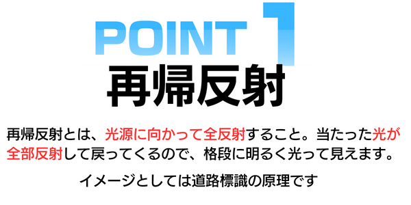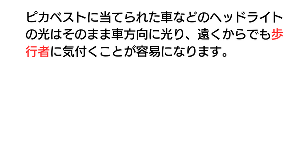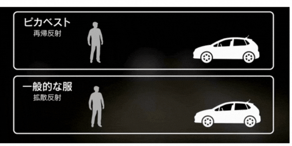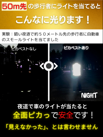車のライトや光に反応してピカッと真っ白に反射!暗闇の事故、災害から大切な人を守ります