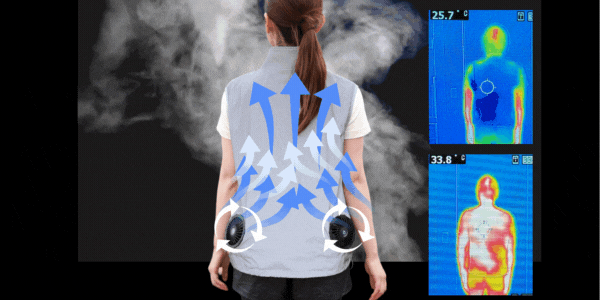 瞬冷ピカベストを着用すると一気に表面温度が下がります