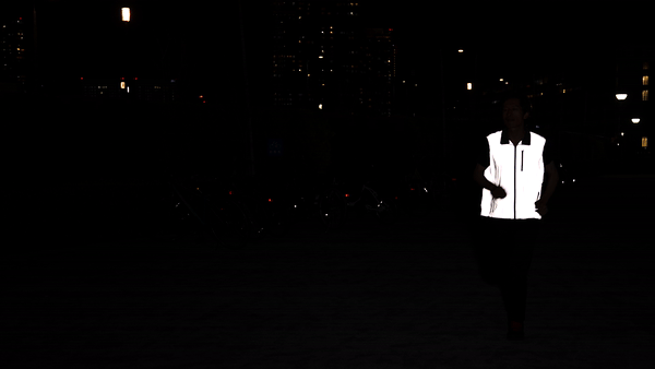 一般的な蛍光黄色の安全ベストではなく、日中のオシャレにも