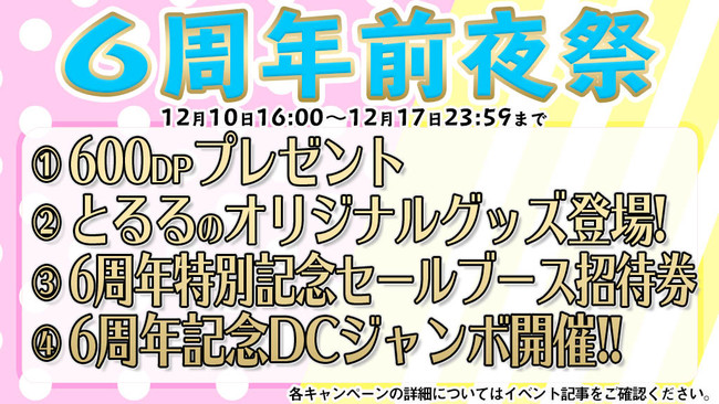 期間中に条件をご達成された会員様を6周年記念祭で登場する『6周年記念ブース』へご招待致します。
