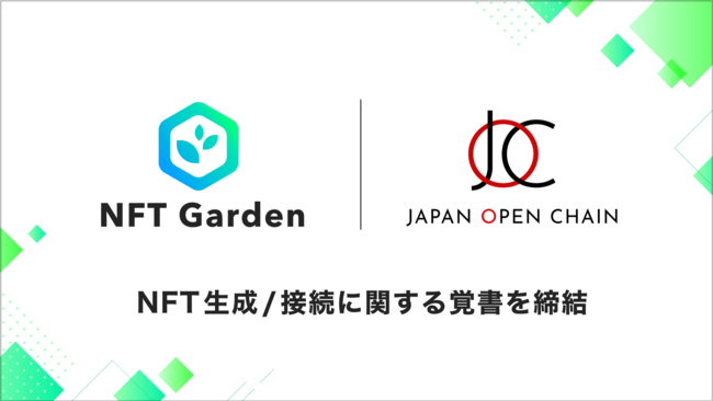 マルチチェーン NFT生成プラットフォーム「NFT Garden」の開発・運営を行うConnectiv株式会社(代表取締役:石井 裕希、以下「Connectiv」)と、Ethereum完全互換のパブリック・ブロックチェーン「Japan Open Chain」を運営する日本ブロックチェーン基盤株式会社(代表取締役:稲葉 大明、近藤 秀和、以下「日本ブロックチェーン基盤」)は、「NFT Garden」と「Japan Open Chain」の接続に関する覚書を締結いたしました。