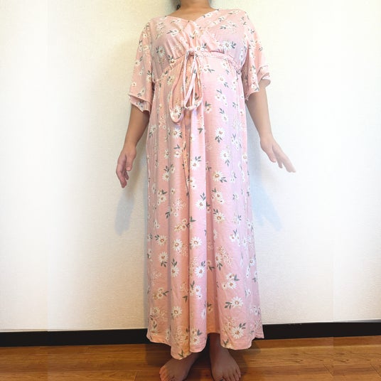 マーガレットプリントとフリルデザインがマッチしたガーリーなワンピースタイプのルームウェアが部屋の中でも気分を上げてくれます♪