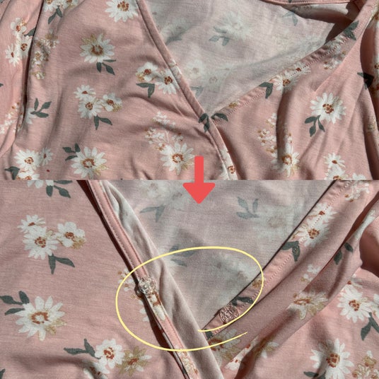 カシュクールデザインで胸元にはチラ見え防止のボタンがついているので授乳にぴったり。これは産後も使用するのが楽しみなアイテムです。