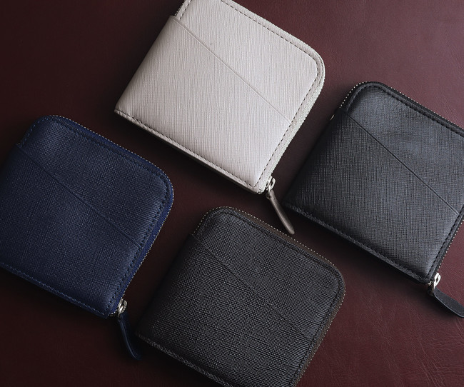 サフィアーノレザーの正式名称は「サフィアノメタルオロ」といい、牛革に型押し加工が施されたものを指します。LIFE POCKET製品のサフィアーノレザーは丈夫で軽く、キズや汚れがつきにくいことが特徴です。
