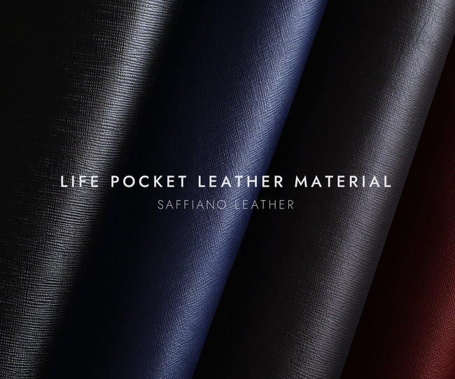 LIFE POCKET製品に起用するサフィアーノレザーは耐久性に優れているため型崩れしにくく、長く美しいフォルムを保つことができます。
