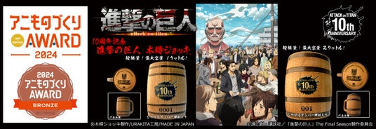 株式会社愛鷹製作所・工房名称:URAKITA工房(本社:東京都世田谷区、代表取締役:上石大介)は、国産樹で下北沢にて製作する【木樽ジョッキ】(きだるじょっき)のTVアニメ『進撃の巨人』コラボ商品が、「京都アニものづくりアワード 2024」クラフトデザイン部門において銅賞を受賞しました。授賞式は「京都国際マンガアニメフェア2024(京まふ)」にて行われました。