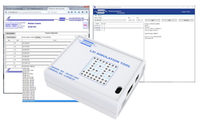 PXIシミュレーション・ソフトウェアはピカリングPXI標準ドライバのインストレーションに含まれています。一方、LXIシミュレーション・ソフトウェア( https://downloads.pickeringtest.info/downloads/LXI_Simulator/?__hstc=256762388.02e51d943e71e0e32c9638d0dd26d77c.1662651009751.1674753278743.1675205252421.20&__hssc=256762388.2.1675205252421&__hsfp=3295102214 )はスタンドアロンのWindowsアプリケーションであり、ピカリングのスイッチング製品とシミュレーション製品を仮想環境でエミュレーションする機能を備えています。エンジニアはPXIシミュレーション・ソフトウェアとLXIシミュレーション・ソフトウェアの両方を使用してテスト・プログラムを動作させることができます。