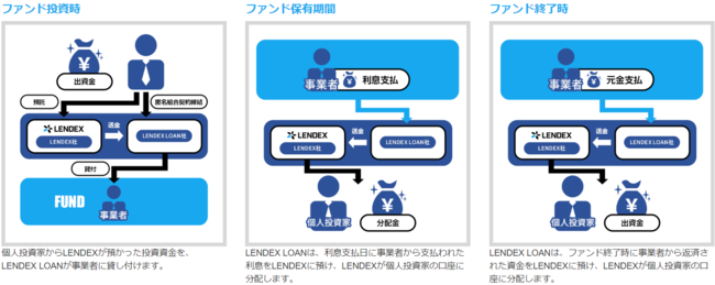 2021年3月、より投資家様の資産を適正に守るため、LENDEXに代わって投資家様の出資金を事業者(融資先)に貸付を行う株式会社LENDEX LOANを設立し投資家様の資金を分別管理。毎月の利息の回収、元本の回収もLENDEX LOANが行いLENDEXを経由し、投資家様へお支払いいたします。