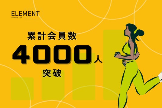 2020年から都内を中心に全国41店舗を展開する「ELEMENT」は、月額39,800円で通い放題のパーソナルジムブランドです。1回30分のパーソナルトレーニングを通してお客様の「運動の習慣化(※1)」定着に向けて体づくりをサポートしてきましたが、サービス提供開始から4年の2024年1月に累計会員数が4,000人を突破いたしました。