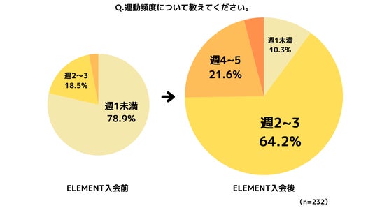 1.ELEMENT入会前の運動頻度は8割が「週1未満」だが、入会後は9割が運動の習慣化を実現
