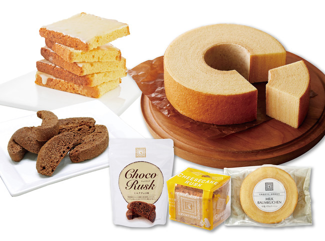チョコラスク ミルクチョコ、チーズケーキラスクプレーン、牛乳バウムクーヘン
