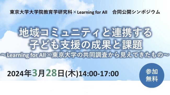 東京大学大学院教育学研究科×Learning for All 合同公開シンポジウム「地域コミュニティと連携する子ども支援の成果と課題~Learning for All ×東京大学の共同調査から見えてきたもの~」