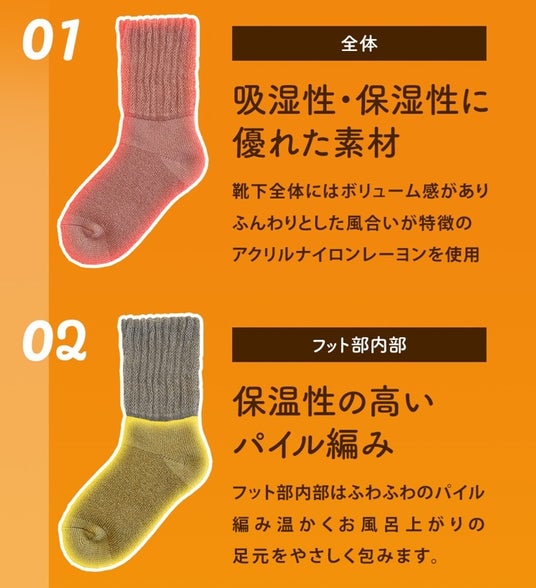●吸湿性・保湿性に優れた素材 ●保温性の高いパイル編み