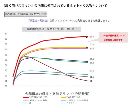 『履く用バスロマン』で使用する糸では低温やけどを防ぎ、適温になるようホットハウスW(R)の