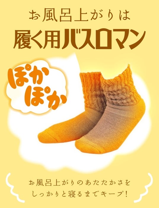 「薬用バスロマン」のあとは「履く用バスロマン」でお風呂上がりのポカポカ感を眠る前までしっかりキープ!