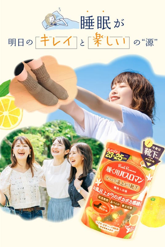 美容と健康に着目している靴下製造業の砂山靴下株式会社(本社:東京都葛飾区・代表取締役:砂山 直樹、以下「砂山靴下」)はアース製薬株式会社(本社:東京都千代田区・社長:川端克宜、以下「アース製薬」)が展開する入浴剤ブランド「バスロマン(※1)」とのコラボレーションアイテムを2024年9月20日(金)に自社ECサイト・Amazon公式ストア・楽天市場公式ストアにて販売(※2)、10月1日(火)より全国のバラエティショップ、ドラッグストア、専門店等(※3)にて順次発売いたします。