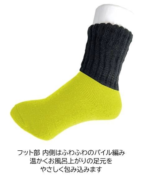 フット部内側はふわふわであたたかいアクリルレーヨンをパイル編みにしています。