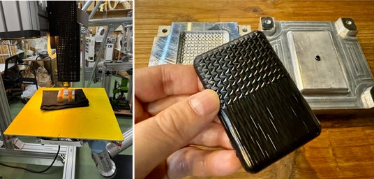 簡易型をビルドプレートにセットし、REX-BUTLERの強力な3Dプリントヘッドを用いればば簡易成形としても利用できます。写真は弊社のデジタルシボ(R)D3テクスチャー(R)のシボサンプルを成形したものです。
