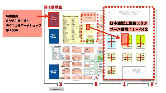 ※会場マップ:出展ブースは日本金型工業会エリア内 特別講演はテクニカルワークショップ第1会場にて