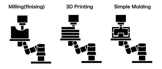 3Dプリンターとしてはもちろん、現在開発中の切削加工ユニットの活用や、簡易型を用いた射出成形機としても利用可能
