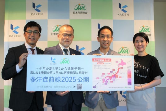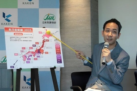 科研製薬株式会社(本社:東京都文京区、代表取締役社長 堀内裕之、以下「科研製薬」)は、一般財団法人 日本気象協会、株式会社JMDC、そして長崎大学との産学連携により作成した『多汗症前線2025』を公開しました。ワキ汗をはじめとする多汗症に悩み、受診をためらっている方々、そして一般の方々に向けて、受診機会の促進と疾患認知の向上を目的に、「多汗症前線」を解説するセミナーを2025年4月9日(水)に開催しました。