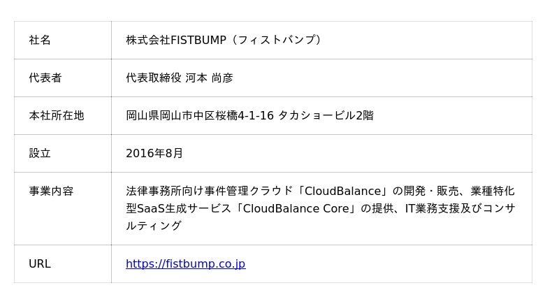 「テクノロジーで『らしさ』をつくる」をミッションに掲げ、法律事務所向け事件管理クラウド「CloudBalance」、業種特化型SaaS生成サービス「CloudBalance Core」等の開発・販売を行う株式会社FISTBUMP(本社:岡山県岡山市、代表取締役:河本 尚彦、以下「当社」)は、事業拡大および関東圏全域における顧客対応・採用活動の強化を目的に、2026年2月2日(月)より神奈川県横浜市の「WeWork オーシャンゲートみなとみらい」に横浜支店を開設いたします。