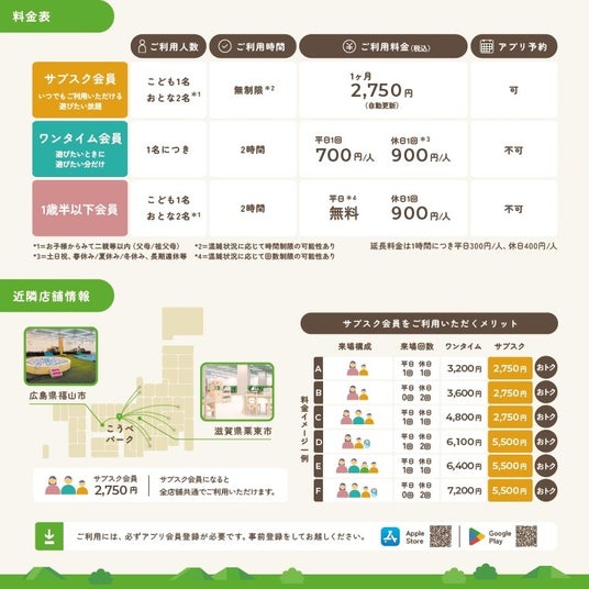 サブスク会員 こども1名につき:2,750円/月 *同伴保護者(大人)2名まで無料