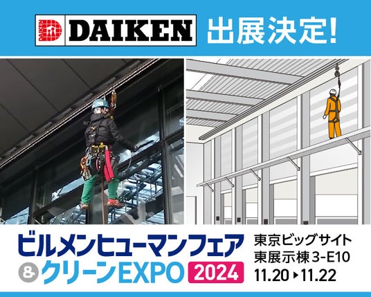 建築金物・外装用建材・エクステリアなどの総合メーカー、株式会社ダイケン(本社:大阪市淀川区 社長:藤岡 洋一)は、2024年11月20日(水)~22日(金)に東京ビッグサイトで開催される、国内最大級の建物・施設・ビルメンテナンスの展示会「ビルメンヒューマンフェア&クリーンEXPO2024」に出展します(ブース番号:3-E10)。