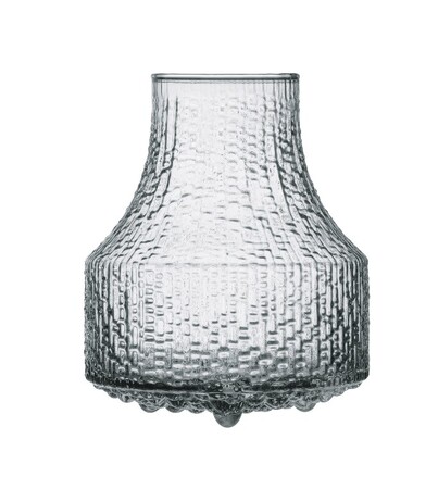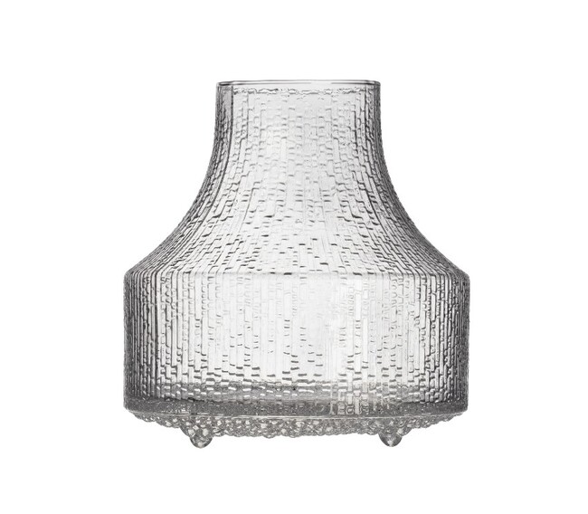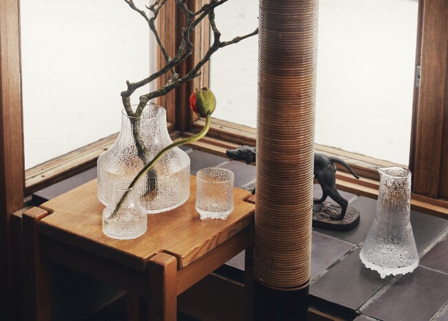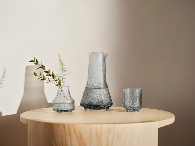溶けた氷の中に浮かんでいるような小さな三つの氷の頂が支える底面のデザインも特徴的なウルティマ ツーレは、1968年に発表されるやいなや成功を収めて以来、55年の間にイッタラの象徴ともいえるコレクションに成長しました。グラスやプレート、サービングアイテムに加えて、インテリアアイテムへとコレクションは広がっていきます。