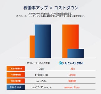 当社は、問い合わせ対応をAIによって100%完結できることを目標に商品開発に取り組んでおり、今回のAIファーストサポートはその第一弾となります。当社のサポートセンターでは30%のお問い合わせ削減に成功しており、調整を重ねることで更なる進化が期待できます。また導入コストの面では業界水準に照らしても低価格でのご提供が可能です。