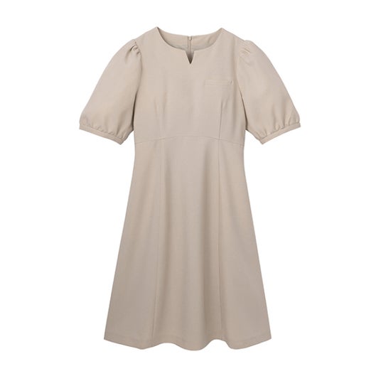 デコルテのデザインとパフスリーブで、華やかさを演出するフレアシルエットのワンピース。(BAW005)