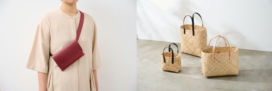 1つめは、月桃編みの伝統工芸ブランド「桃布里」(Tau bu li)。設立10年の集大成として新しい編み技法を研究し、より幅広いシーンで使えるバッグシリーズを完成させました。2つめは、原住民の伝統的な革彫刻を発展させ、民族独自の手紋(刺青)模様がもつ意味合いを抽出してデザインした「AliAli頑皮雕」のサコッシュです。