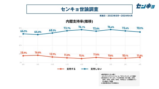 支持率は前月比1.7ポイント増、不支持率は前月比2.5ポイント減の70.9%